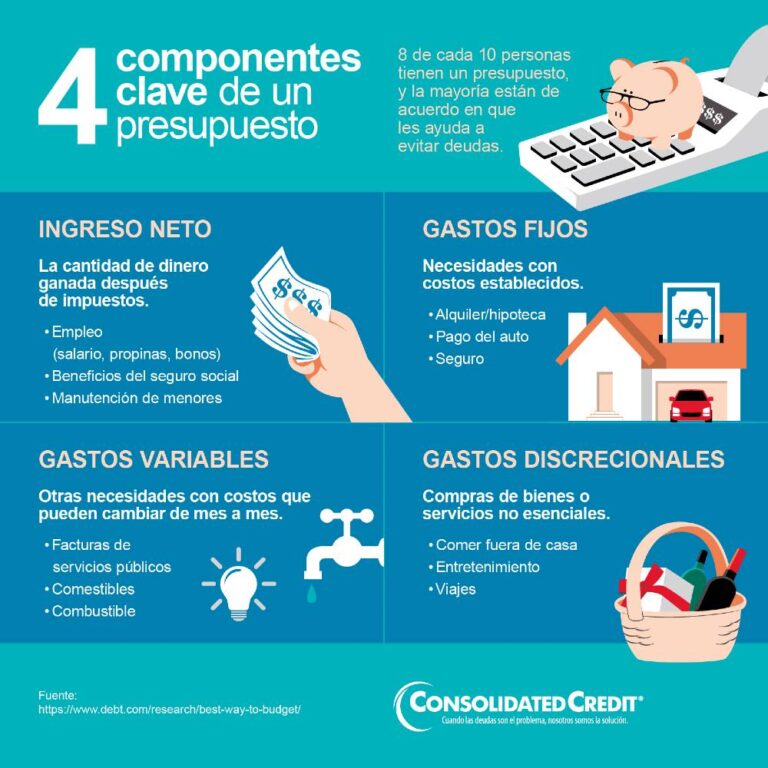 Aprende sobre ingreso neto, gastos fijos, gastos variables y gastos discrecionales a través de ejemplos para mejorar tu presupuesto.